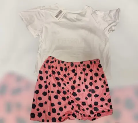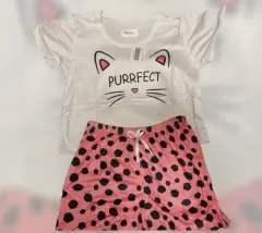 Pijama juvenil de 2 piezas gato. Pijama juvenil 2 piezas (playera y short) con figura de gato, color blanco y rosa.