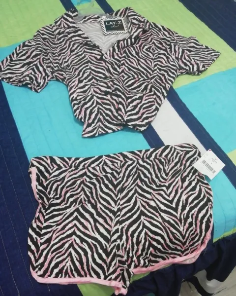 Pijama Lay Z. Pijama dos colores rosa con negro tipo cebra dos piezas tela deliciosa