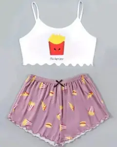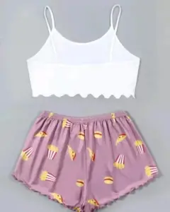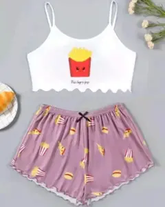 Pijama ligera Shein, esta muy bonita y cómoda para descansar, la tela es ligera y fresca. La prenda está completamente nueva y sin detalles, sus medidas son:Largo de top: 35.5 cmLargo de short: 27.1 cmPecho: 92 cm Contorno de cintura: 70-114 cmContorno de caderas: 114 cm