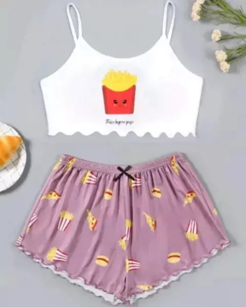 Pijama ligera Shein. Pijama ligera Shein, esta muy bonita y cómoda para descansar, la tela es ligera y fresca. La prenda está completamente nueva y sin detalles, sus medidas son:Largo de top: 35.5 cmLargo de short: 27.1 cmPecho: 92 cm Contorno de cintura: 70-114 cmContorno de caderas: 114 cm