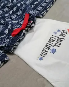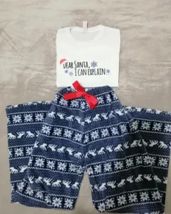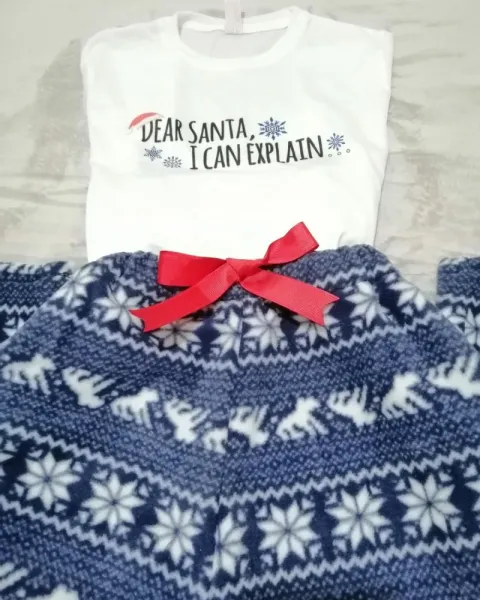 Pijama navideña. El pantalón es de tela polar super calentita. Y la playera 100% poliester pero muy fresca y delgada.