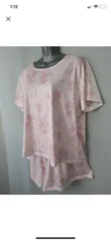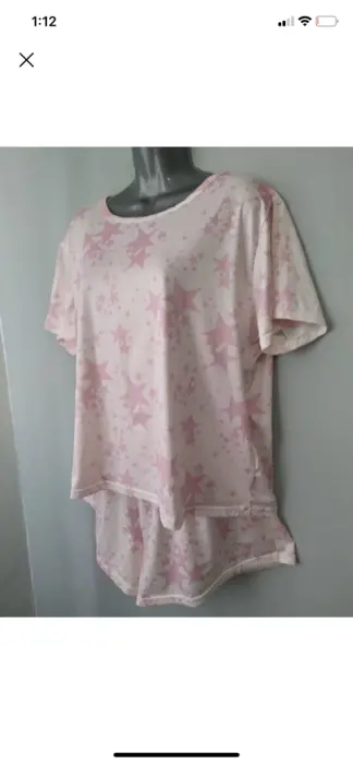 Hermosa pijama color rosa claro con estampado de estrellas. La tela es elastica y ligera.Medidas aproximadas:De axila a axila 63 cm Largo de la playera 61 cm Largo del short 32 cm