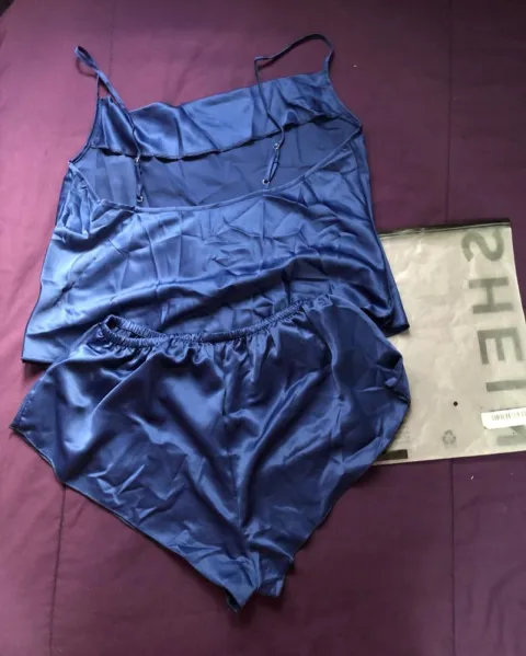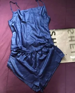 Pijama SHEIN nueva. Linda pijama de satin, color azul marino, talla grande. Prenda totalmente NUEVA