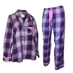 Pijama Victoria Secret cuadros. La calidez se une a la comodidad: Ponte cómoda cuando las temperaturas bajan con el conjunto de pijama de franela ultra cómodo para mujer. Fabricado con 100% algodón, este conjunto de pantalones de franela se siente agradable y suave cepillado contra la piel, es completamente no irritante y es cómodo transpirable para mantenerte caliente sin sudar.