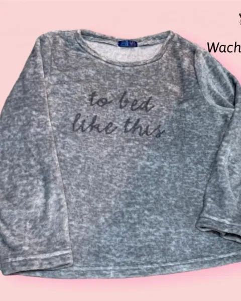 Playera/sudadera de pijama. Bonita playera tipo sudadera, es de pijama. Esta en buen estado, unicamente la etiqueta del interior se fue despintando. Viene algo corta y reducida