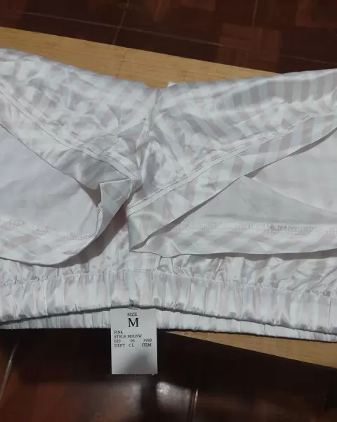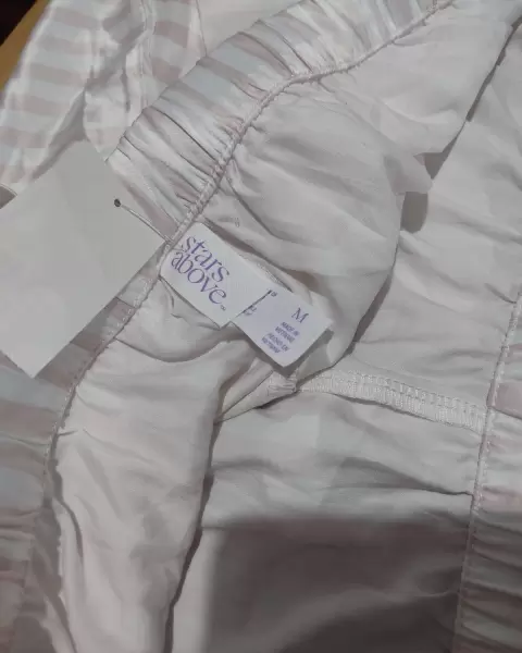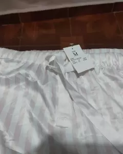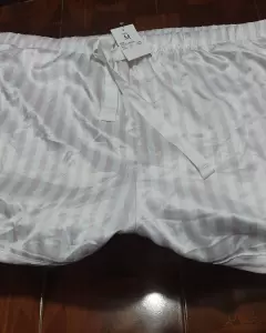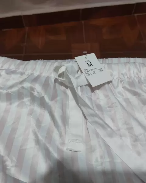 Short d pijama delgado con rallas de color rosado pero muy claritas es solo el shortLa tela es muy suave y delgada