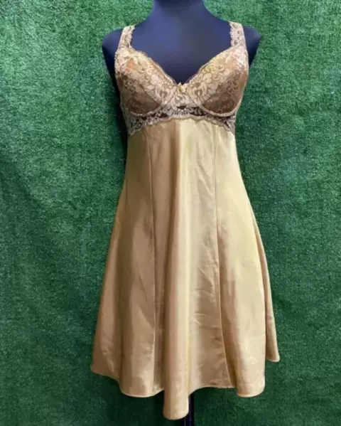 Vestido tipo Satin Victoria's Secret. Hermoso Vestido para dormir tipo satin dorado, hace una figura muy bonita y tiene ese toque sexy discreto, talla M y se encuentra en Perfectas condiciones