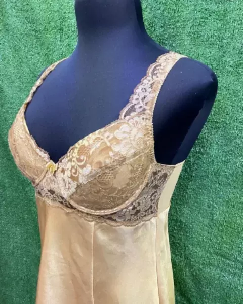 Hermoso Vestido para dormir tipo satin dorado, hace una figura muy bonita y tiene ese toque sexy discreto, talla M y se encuentra en Perfectas condiciones