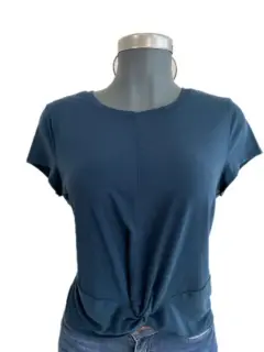Blusa azul marino nudo frente. Blusa casual color azul marino Tienen cruce tipo nudo al frente La tela trae algo de licra
