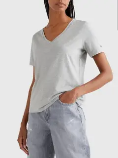 Blusa gris claro Tommy Hilfiger. Blusa de algodón grueso en gris claro Tommy Hilfiger, cuello en V, talla M