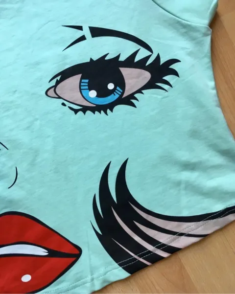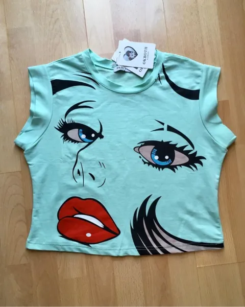 Blusa Tshirt Aqua Menta Pop Art Girl, Nueva Mediana, Algodon suave, queda a una Ch,