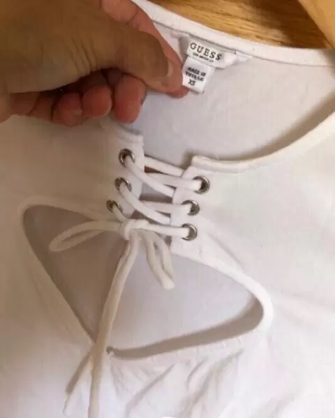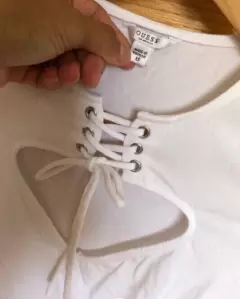 Body Blanco GUESS. Body con hermoso cruce de trenza con delgadas cintas de la misma tela en delicado escote delantero superior. Fashion, practico y fresco, Tanga-Hilo en la parte trasera inferior, con broches ajustales. En perfecto estado. Talla XS tambien queda a S, la tela estira considerablemente. Medidas: Axilas 42ctm, cintura 38ctm.