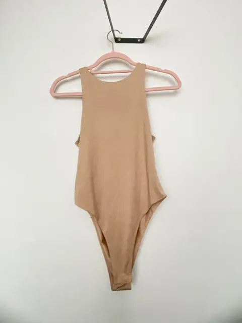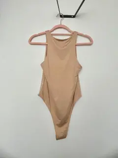 Body color nude. Body en color albaricoque, tiene broches en la parte inferior para abrocharse y doble forro en la parte del pecho. Talla xs. Con un liguero detalle que se muestra en la última foto. Nada que altere su uso!