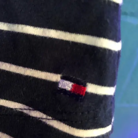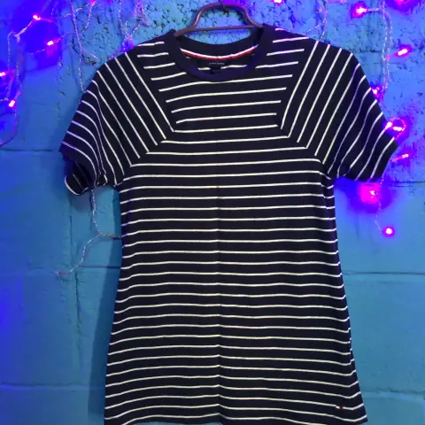 Bonita playera 🫶. Playera tommy strech líneas horizontales en color blanco con fondo azul marino
