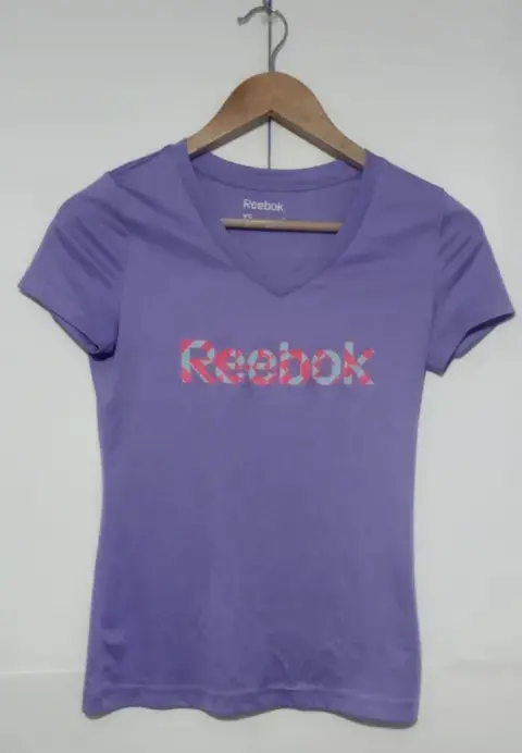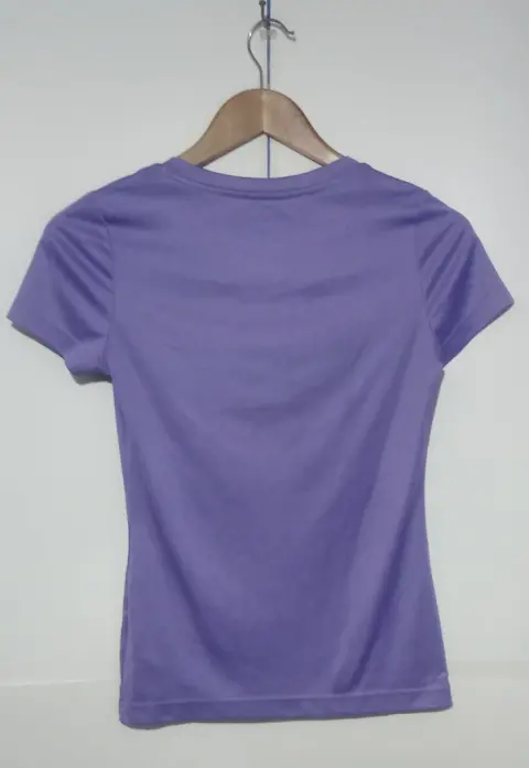 Camiseta deportiva talla extra chica, tela ligera, manga corta, color morado, la tela no estira mucho
