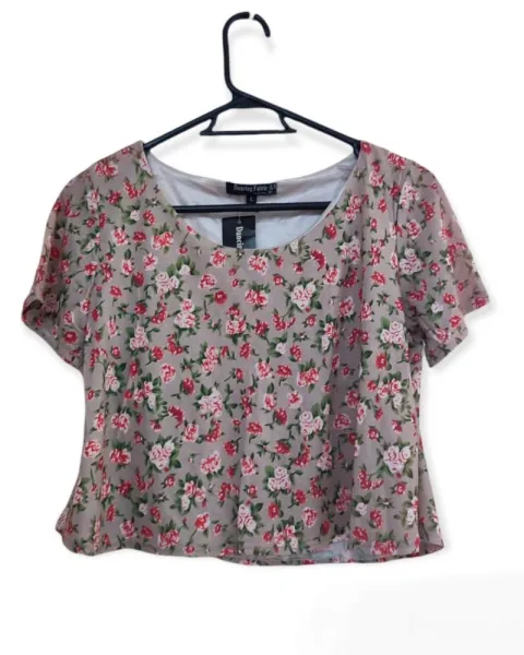 Crop top acampanado. Tela stetch. 42 cm de axila a axila. Tiene forro con resorte en el pecho. La tela a la altura del hombro es de un tono distinto, se puede apreciar en la foto 4. Todas las prendas de $150 se van de promoción 2*250, avísame y te armo paquete.