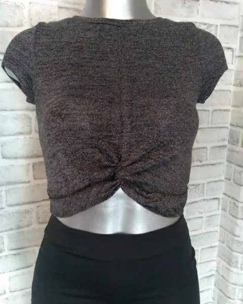 Croptop marca Forever 21 talla extrachica también queda a tallachica como ejemplo mi maniqui es color gris brilloso nuevo con etiquetas