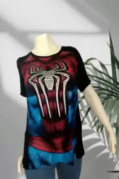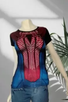 Duo de Playeras para el talla Xl reducida a L, para ella talla MSpider man y Spider girl, Sublimadas 3D Tela ajustable. (Una sola puesta)