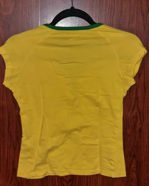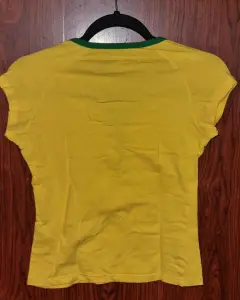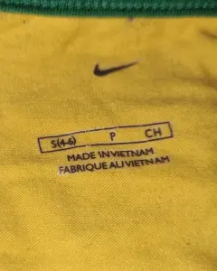 Jersey Brasil Nike. Jersey de algodón stretch, verde amarillo, Nike, talla chica, se ajusta al cuerpo.