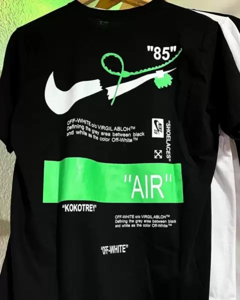 Logo Nike off white. Playeras unisex en blanco o negro cuello redondo manga corta tallas disponibles
