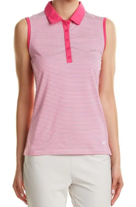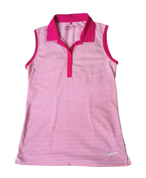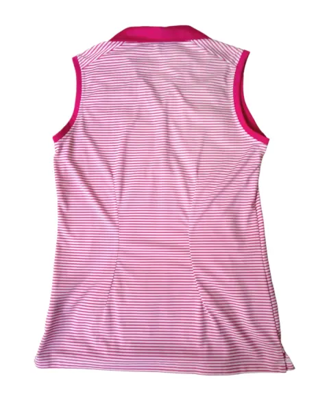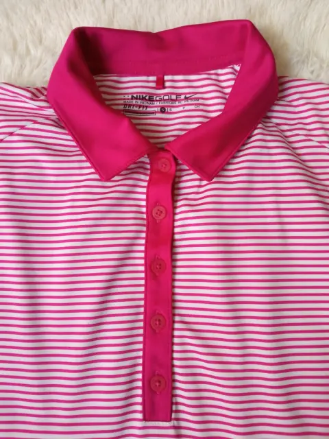 Nike Dri-Fit polo para mujer a rayas.. Nike Golf Women's Dry-Fit Stripe Polo Shirt, Pink, Size SmallDetalles del diseño: tecnología dry-fit, aberturas laterales en el dobladillo. Tapeta de botones, prenda nueva sin etiqueta. Material: 100 % poliéster.Medidas: 62 cm de largo, 66 cm de ancho hombros- pecho, 76 cm de ancho en cintura, 20 cm de abertura en mangas.