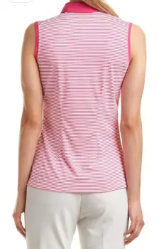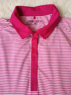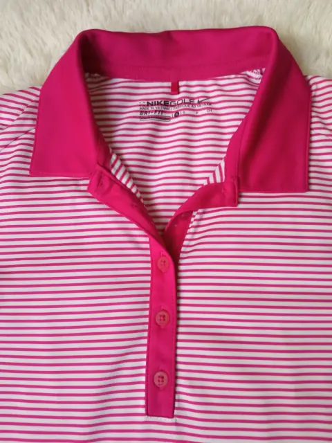 Nike Golf Women's Dry-Fit Stripe Polo Shirt, Pink, Size SmallDetalles del diseño: tecnología dry-fit, aberturas laterales en el dobladillo. Tapeta de botones, prenda nueva sin etiqueta. Material: 100 % poliéster.Medidas: 62 cm de largo, 66 cm de ancho hombros- pecho, 76 cm de ancho en cintura, 20 cm de abertura en mangas.