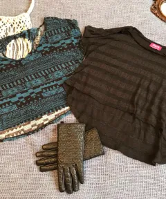 Crop top azul indigo con negro, talla L marca LOB. Crop top negro con transparencias, tall L Shasa