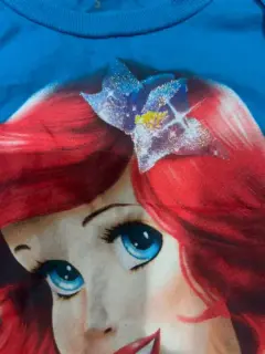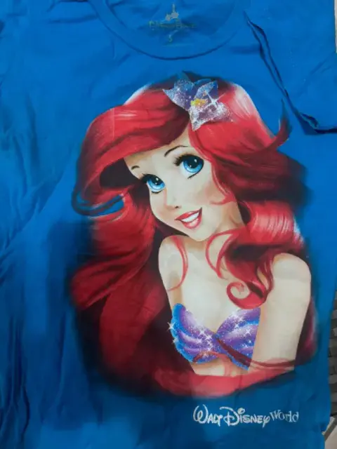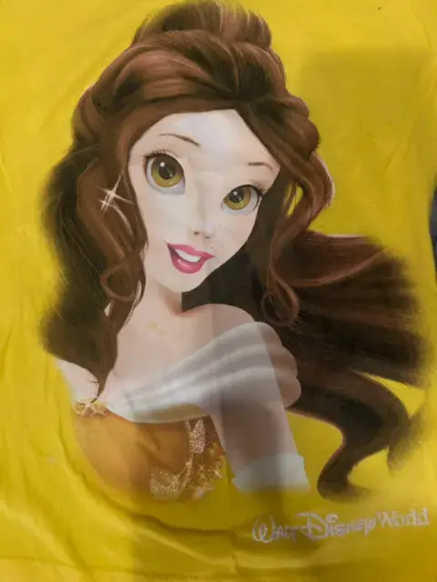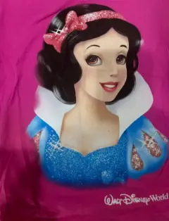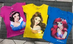 Son 3 playeras de princesas, compradas en parques de Disney. Todas son talla S, ideales para niñas talla 4-6 aprox. Sólo la playera rosa tiene 2 manchitas de pintura al frente y hasta abajo (visible en la foto). El estampado está intacto y además tienen detalles de brillitos. Están muy lindas y de colores vivos.