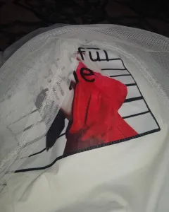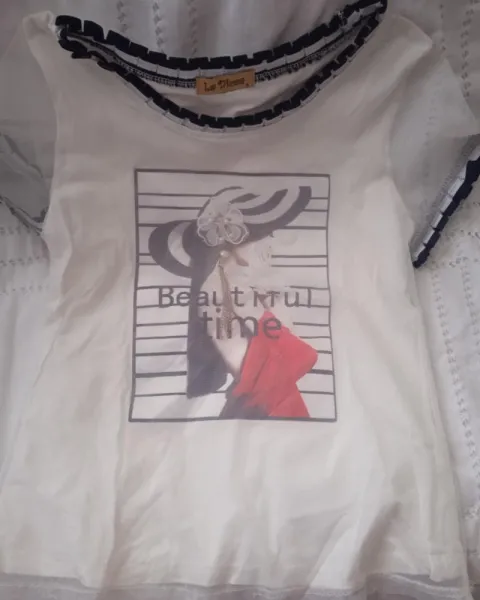Playera estampada encima tiene tul Es talla S no estira mucho Muy bonita