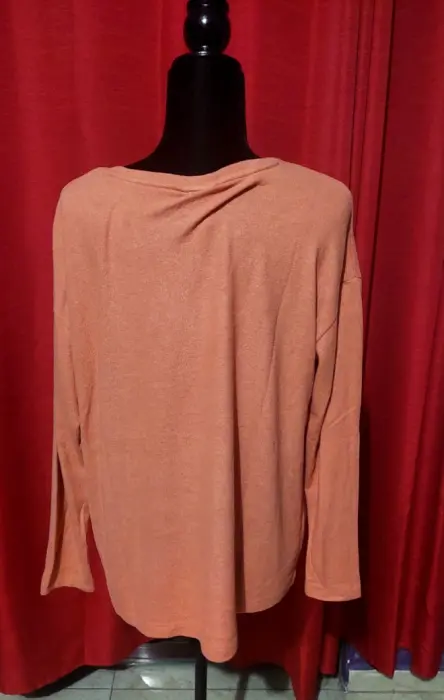 Playera tela suave, talla L, pero viene amplia para una XL a 2 XL, color naranja teure, muy comoda y suave tela, totalmente nueva. Medida axila a axila 120 cm y de hombro 66cm.