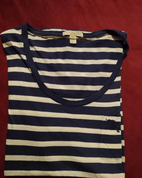 Playera a rayas Burberry. Playera para dama talla L, de rayas azul y blanco.