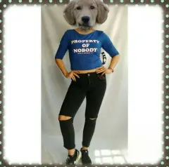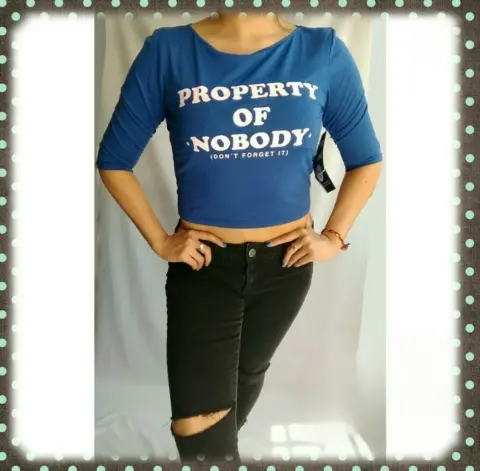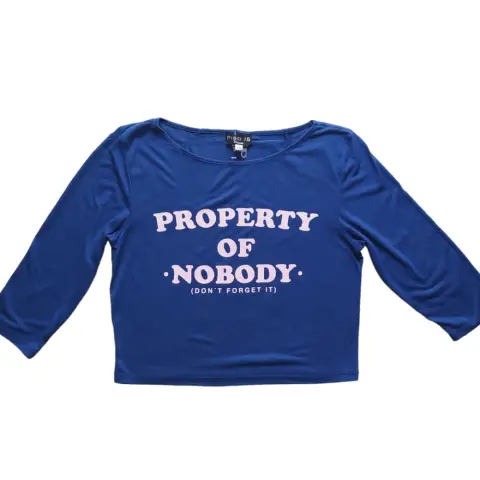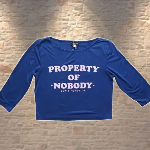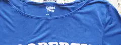 Hermosa playera azul manga 3/4, con letras en rosa pastel . Marca Cuidado con el perro, talla M. Estira.MEDIDAS:Hombro a hombro 38 cm.Axila a axila 43 cm.Largo total 45 cm.