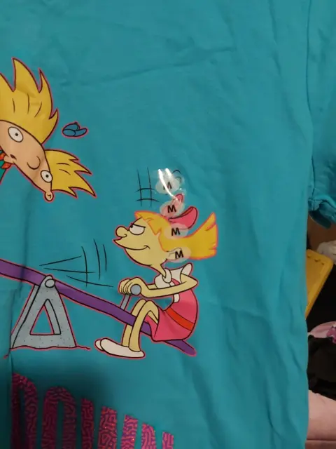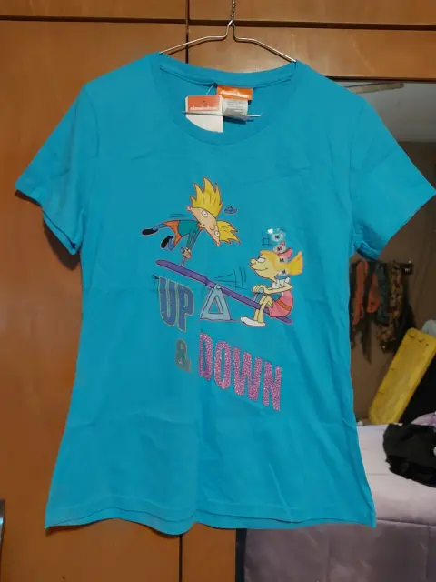 Playera azul talla mediana nueva con Helga y Arnold la otra gris que subí es de Angelica una disculpa de antemano.Ambas son nuevas.