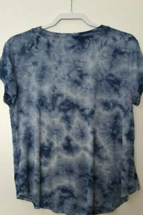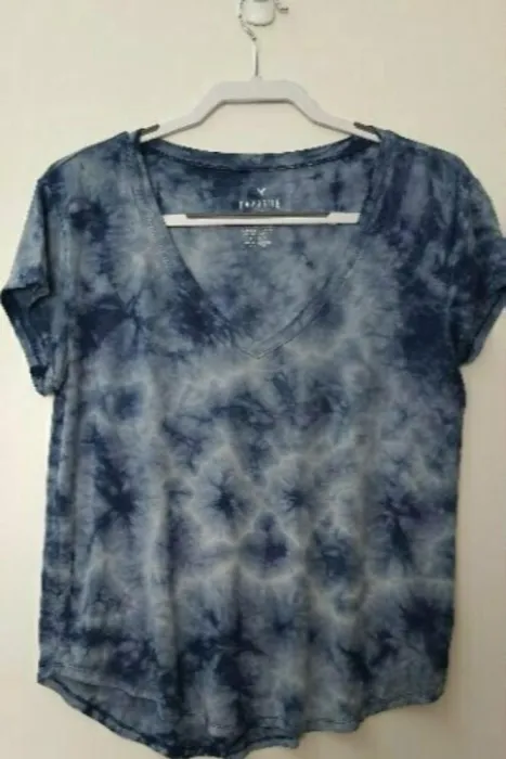 Playera azul con estampado tie dye marca American Eagle.Súper suave. La tela estira. Es un poco más cortaen frente. Talla M. Medidas aproximadas:48cm de axila a axila, 61cm de largo desde el hombro.*TODAS MIS PRENDAS SE DESINFECTAN CON LYSOLLAVANDERIA PARA TU MAYOR TRANQUILIDAD*