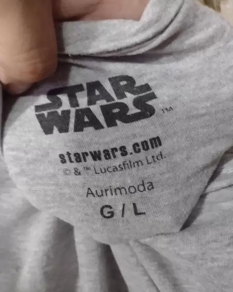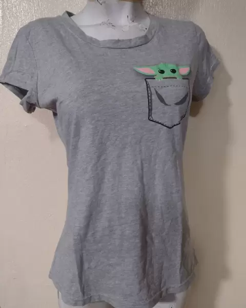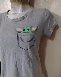 Playera básica. Color gris estampado de bolso con bebé Yoda