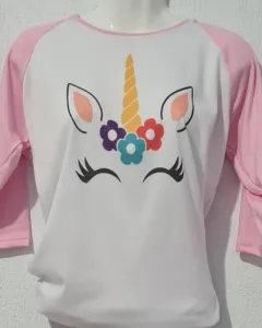 Playera beisbolera ranglan rosa con diseño de unicornio tallas CH M y G