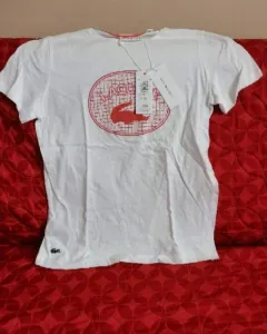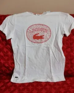 Playera blanca. Playera sport blanca de la marca Lacoste con logotipo en color naranjaNueva y con etiqueta