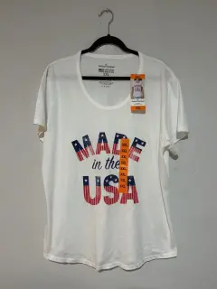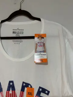 ✅playera color blanco ✅estampado al frente ✅nueva con etiqueta 🏷️ ✅sin detalles ✅la tela estira ✅100% algodón ✅talla 2XL ✅medidas: de axila a axila 61cm largo 76 cm ✅aprovecha súper precio ✅armo paquetes 📦