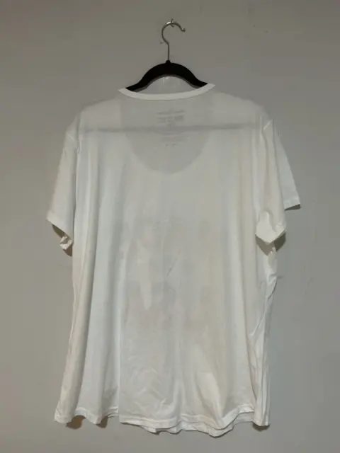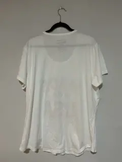 Playera blanca con estampado. ✅playera color blanco ✅estampado al frente ✅nueva con etiqueta 🏷️ ✅sin detalles ✅la tela estira ✅100% algodón ✅talla 2XL ✅medidas: de axila a axila 61cm largo 76 cm ✅aprovecha súper precio ✅armo paquetes 📦