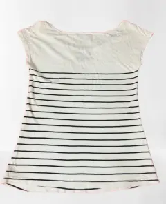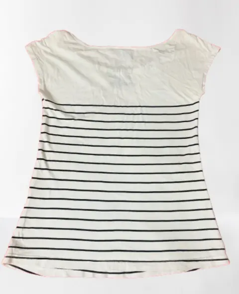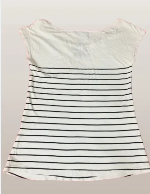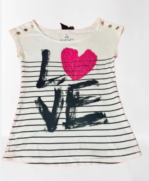 Playera blanca estampada. Con líneas y corazón de pedrería rosa. Talla S. En muy buenas condiciones.