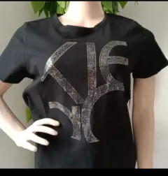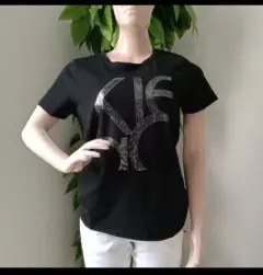 Cómoda playera color negro con el logotipo de la marca en incrustaciones color plateado.Talla M.