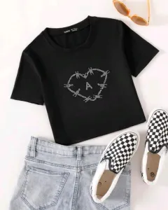 Playera camiseta con estampado corazón diamante. 💗 Obtén $100 de descuento si es tu primera compra con el código de descuento :. JezyEspinosa87bjLzg 💗Playera camiseta negra de estampado corazón diamanteTalla L$220