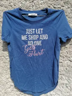 Playera casual azul. Playera larga, casual, color azul, estampado lindo y con abertura al costado