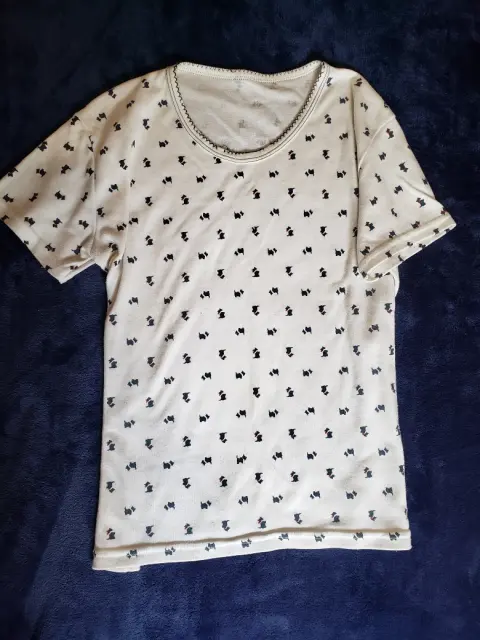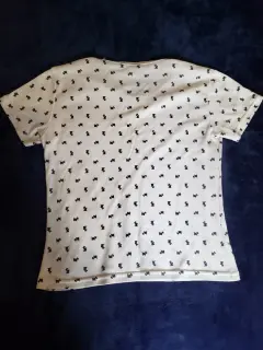 Playera usada, estampado Ferrioni, color blanco, detalle en las costuras, talla M, media vida.