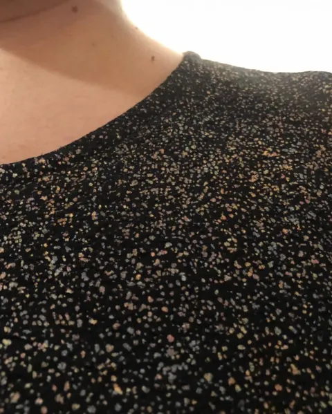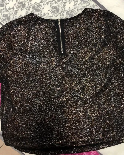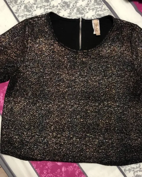 Playera con Brillos. Playera negra con cierre y con destellos de metálicos