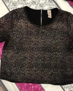 Playera negra con cierre y con destellos de metálicos