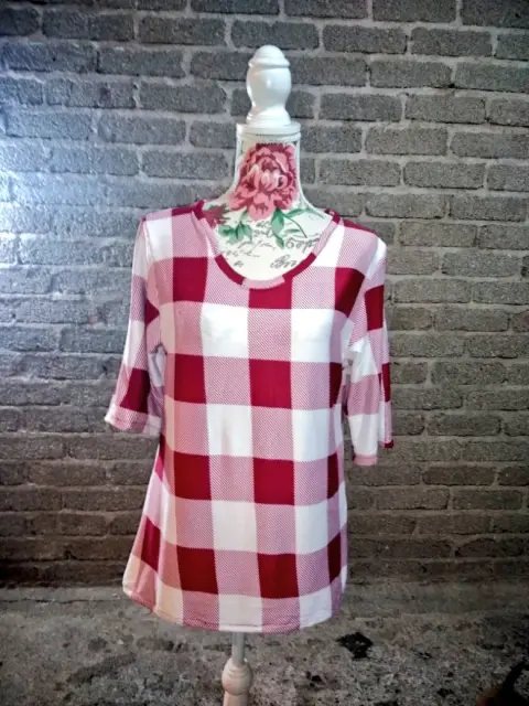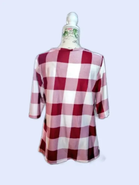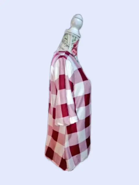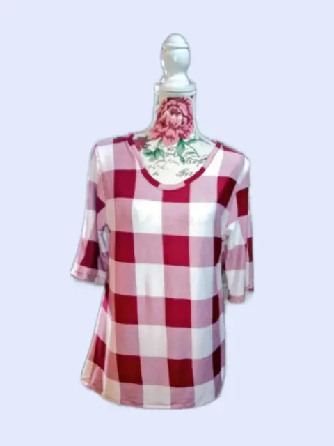 Playera de cuadros color vino con blanco cuello en u manga al codo es de algodón licra es fresca talla L totalmente nueva solo nos queda 1 pieza