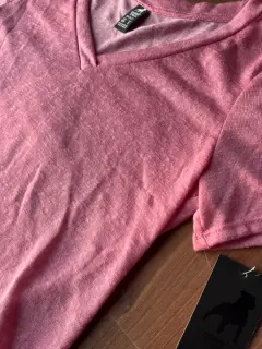 Playera cuello V. Bonita playera corta cuello V , nueva con etiqueta la tela es un poco transparente. Color rosita bajo