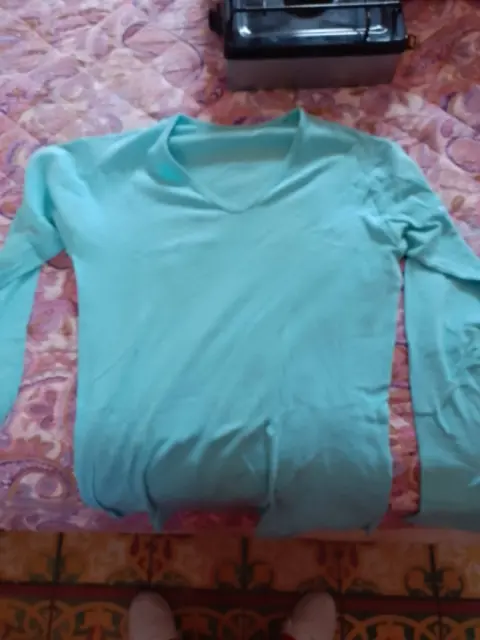 Es una playera de color azul agua, es talla chica, está en buen estado, solo se uso un par de ocasiones