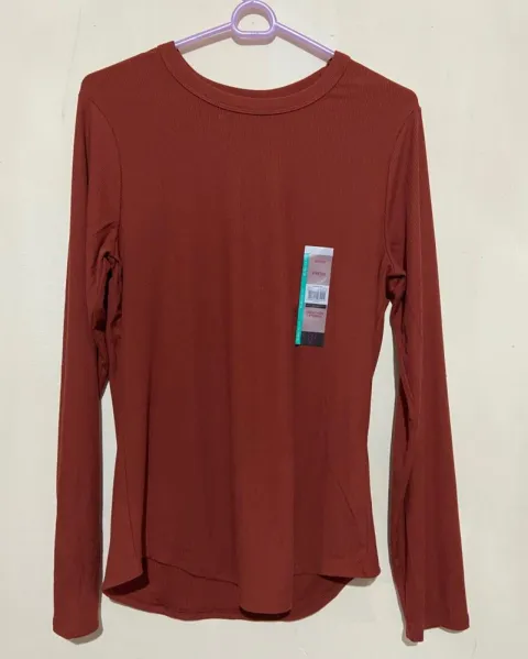Playera de cuello redondo. Playera color chedron manga larga cuello redondo stretch